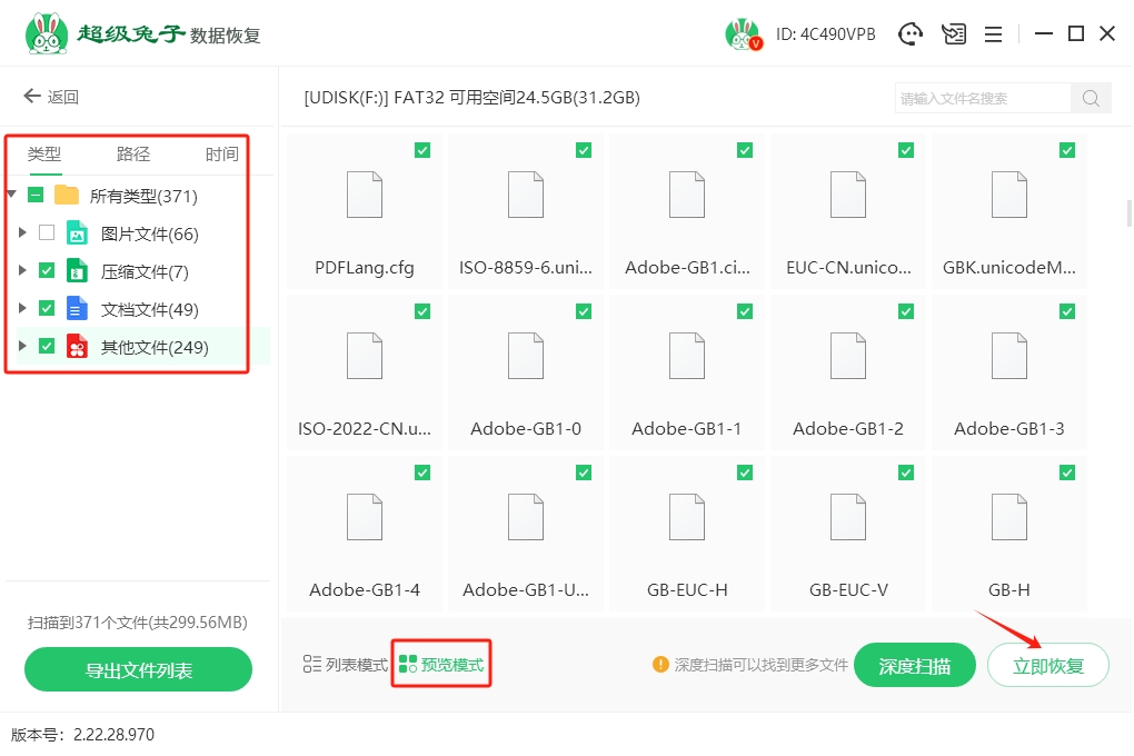 4.当扫描结束时,不妨先点开“预览模式”浏览文件内容,确定文件无误后,再点击“立即恢复”,可以避免恢复错误。