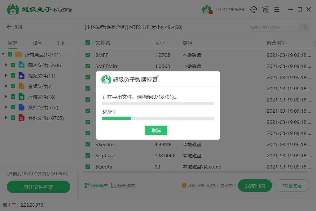 3.扫描过程中别频繁操作电脑,避免影响扫描效果,等结果出来后,在文件列表中勾选想要找回的内容,再点“立即恢复”。