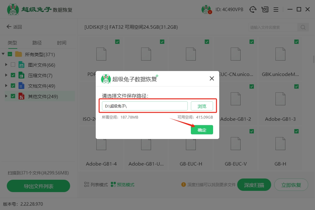 5.在恢复过程中,先按“浏览”选定存放路径,避免保存到原U盘,换个盘更安全。
