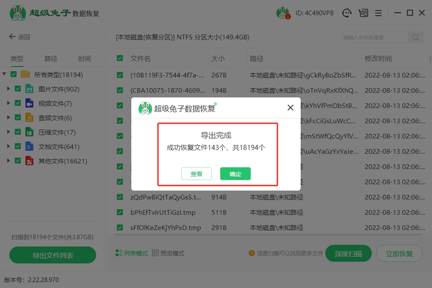 6.数据找回完成后,点击“查看”按钮,系统会自动打开保存目录,方便确认文件有没有遗漏。