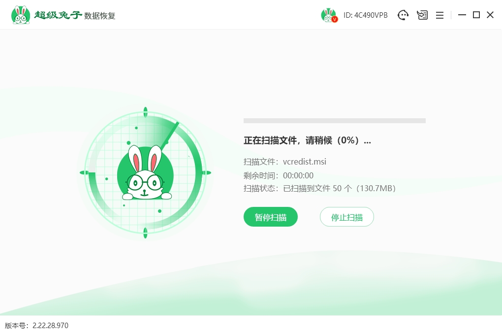2.选好要恢复的U盘后,点击“开始扫描”,超级兔子就会开始恢复,自动查找被删掉的文件。