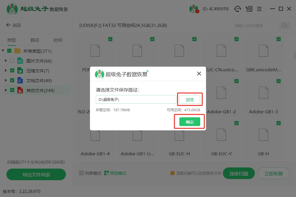 5.开始恢复前,先点“浏览”设置保存路径,最好不要存回原来的U盘,改放到其他磁盘会更安全。