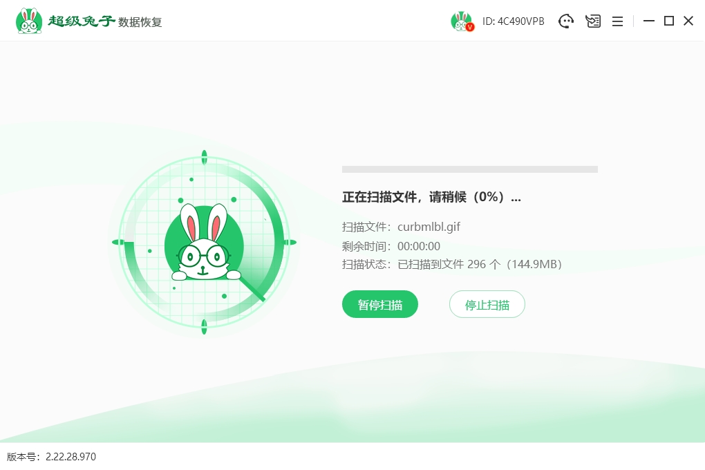 3.扫描内存卡时,耗时长短取决于卡里的数据多少,只要耐心等待,超级兔子会自动完成后续的扫描流程。