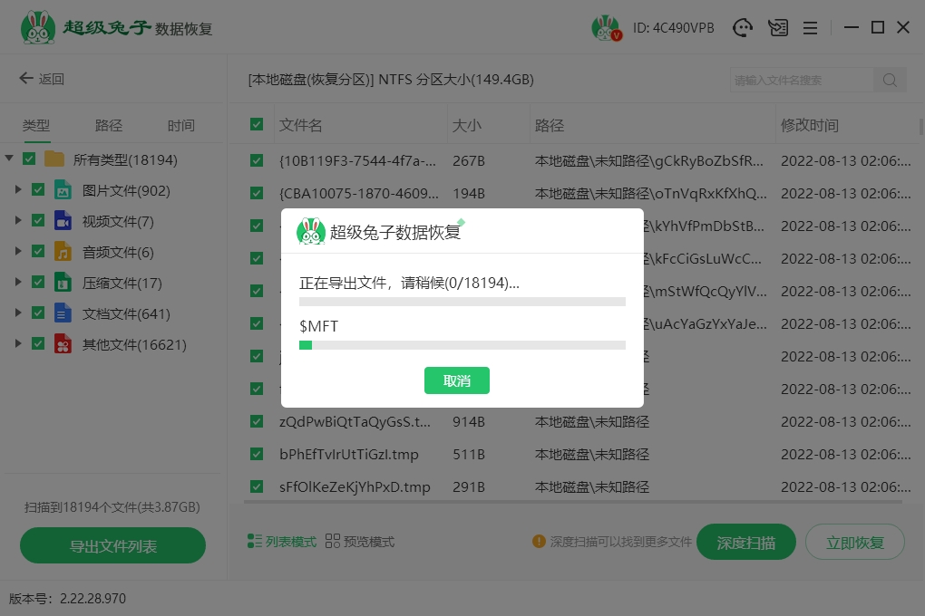 5.在恢复的过程中,超级兔子会自行完成所有步骤,不需要操作,恢复成功后到指定盘就能查看文件。